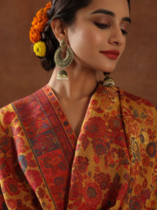 Noorani Palla Handloom Kani Pashmina Shawl - Turquoise, Offwhite