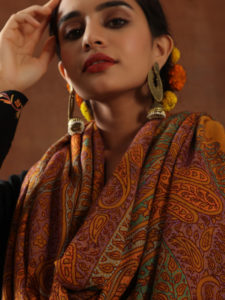 Kalpana Sozni Pashmina Shawl - Offwhite, Rust