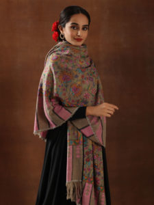 Phool Palla Kani Dorukha Pashmina Shawl - Saffron, Rust