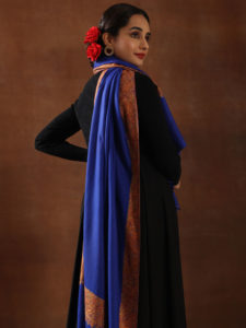 Paisley Jaal Reversible Zari Shawl - Navy, Gold