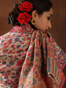 Badaamdar Kalamkari Pashmina Shawl - Autumn Rust