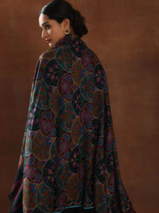 Busaat-e-Gul Kani Weave Wool Shawl - Saffron, Beige