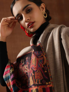 Numaish Palla Aksi Pashmina Stole – Turquoise, Taupe