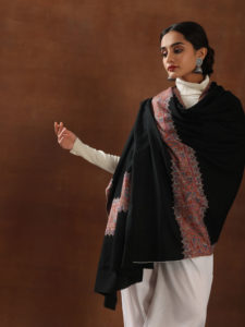 Masakali Ari Tichdaar Wool Stole - Imperial Black, Multi