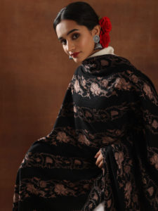 Badaam Jaal Ari Hand Embroidery Wool Shawl -  Kesari Black