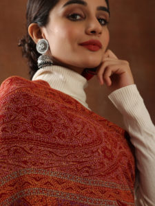 Full Blossom Pashmina Print Stole - Roorkee Red