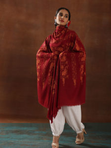 Phool Palla Kani Dorukha Pashmina Shawl - Saffron, Rust