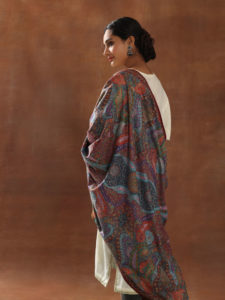 Zia Kalamkari Wool Shawl - Antique Black, Multi