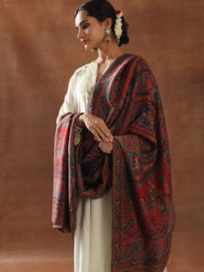 Chinar Bagh Hand Emb Wool Stole – Rust, Black