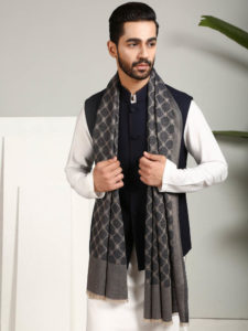 Ethereal Paisley Border Wool Throw - Crimson, Navy