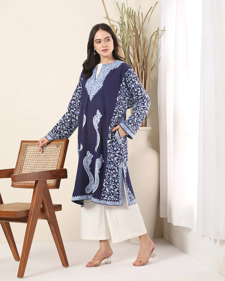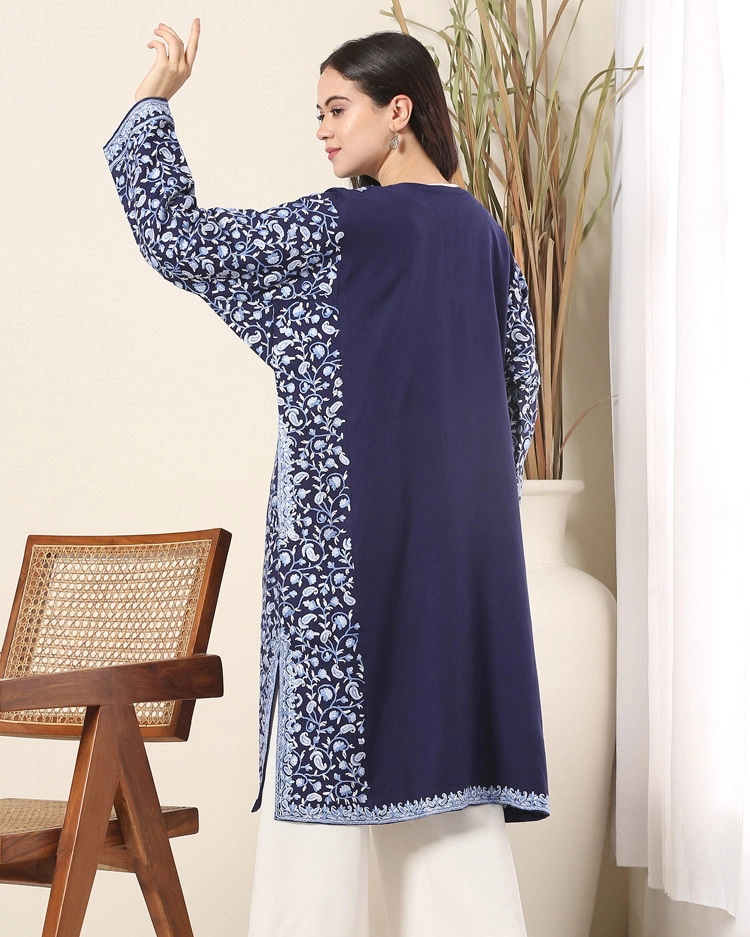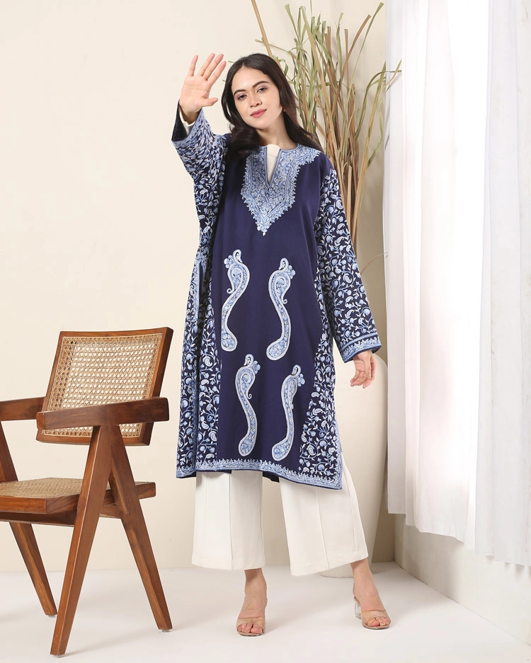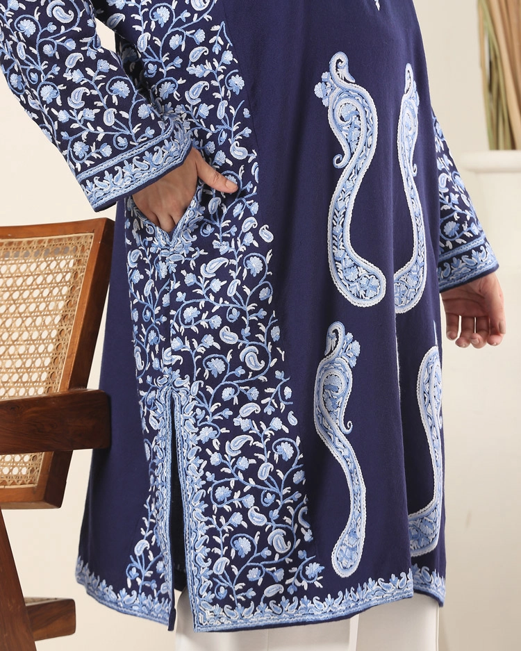 Pure wool phiran completed using the ari technique of hand embroidery.