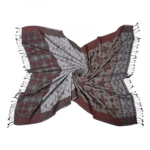 Overlay Fringe Fancy Stole - Navy Offwhite