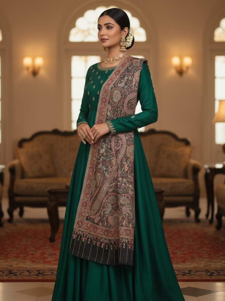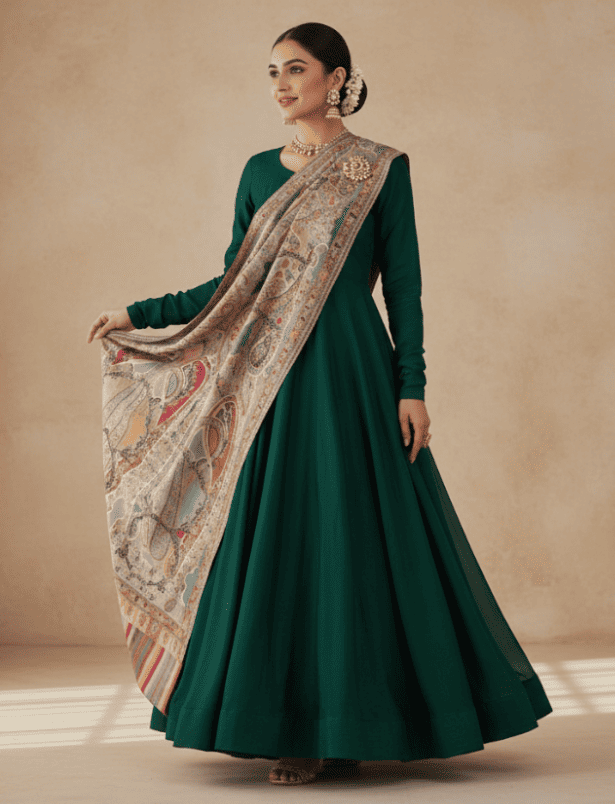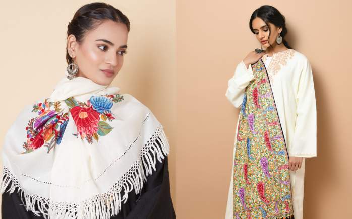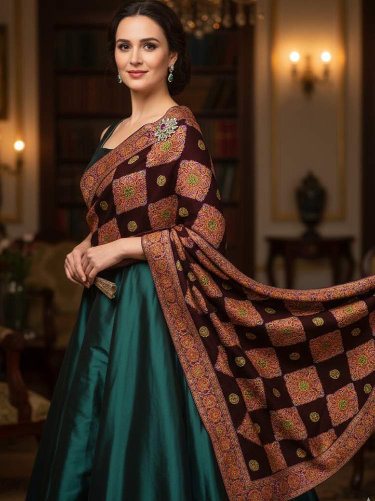 A beautifully crafted shawl—whether it’s a hand-embroidered Ari stole or a soft pure pashmina—can transform your outfit instantly.
